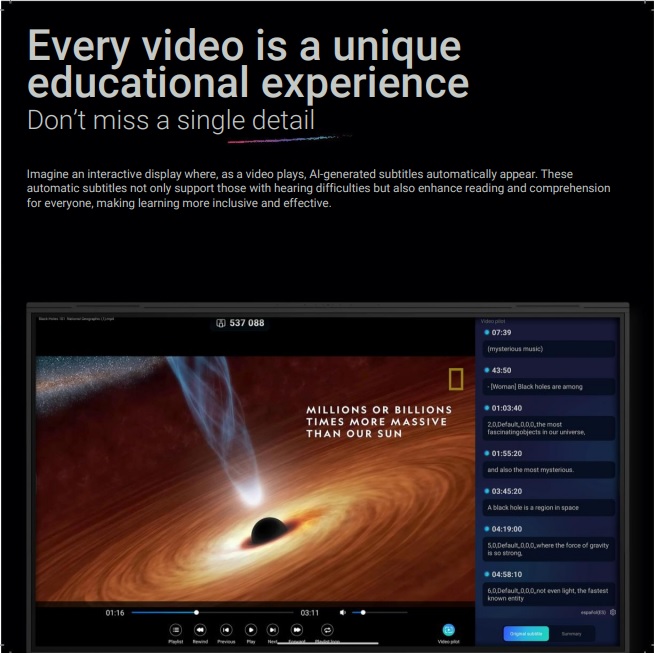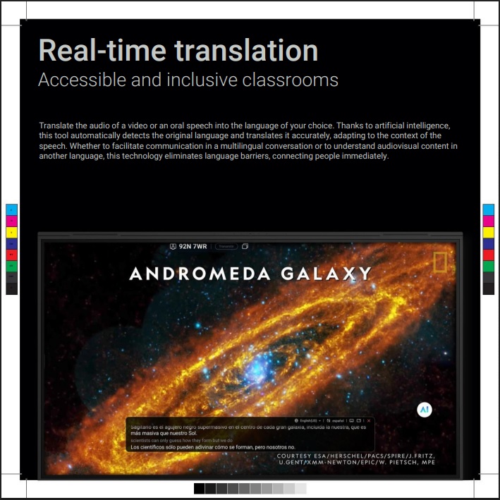Bring lessons to life with AI Imprimir, a powerful suite of artificial intelligence features designed to enhance interactive teaching. Imagine circling a word on the screen and instantly unlocking deeper knowledge, or playing a video where subtitles, summaries, and translations appear automatically. From virtual assistants and generative art to advanced math solutions with Calculator Pro, AI Imprimir creates more inclusive, engaging, and creative classrooms. It’s the ultimate upgrade for schools ready to embrace intelligent, student-centered learning.