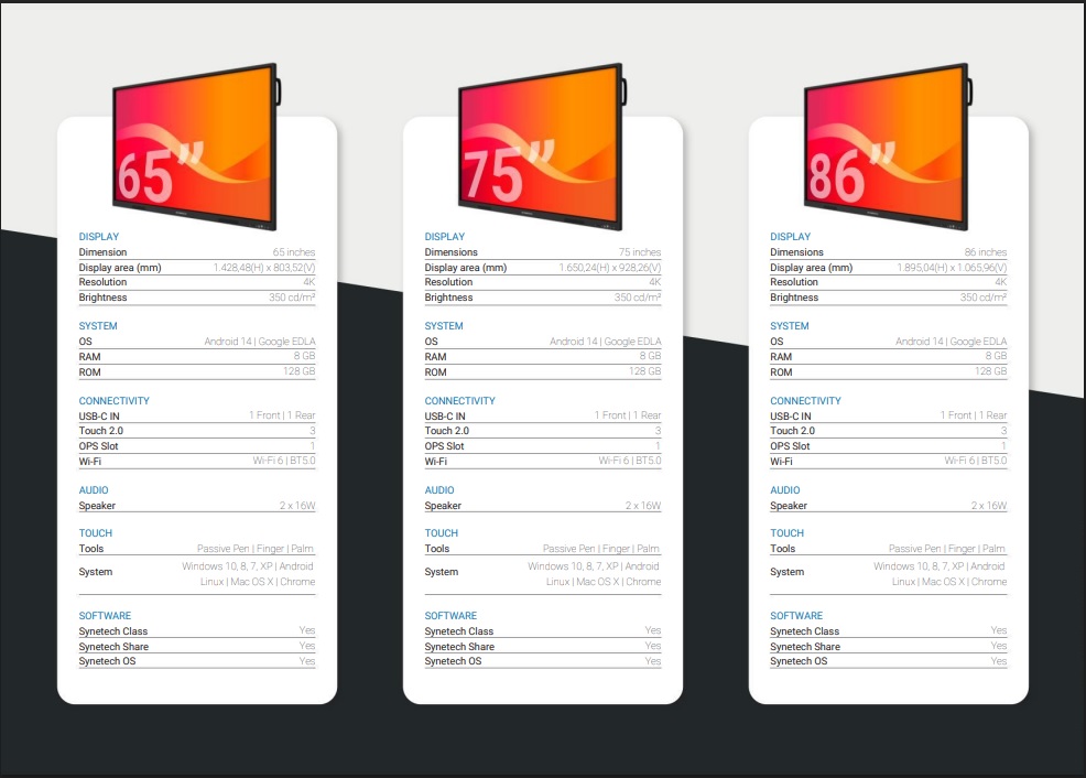 - Synetech Education Suite: Class, OS, Share, DMS for content, screen sharing & management.