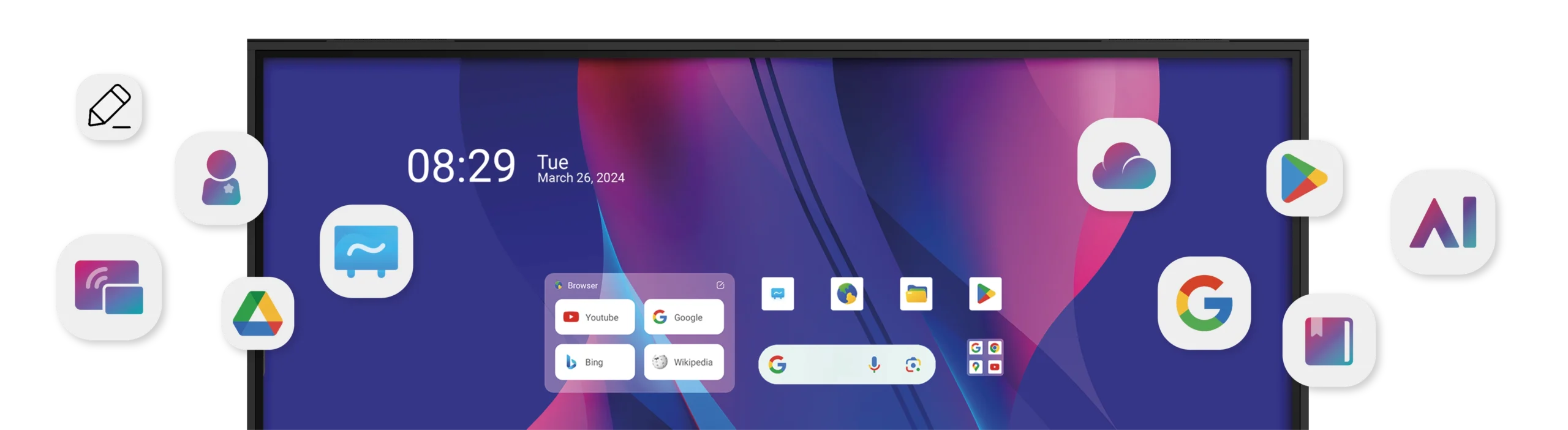 Built for today’s evolving education needs, Piscis combines secure performance, flexible compatibility, and eco-conscious design in one interactive flat panel. With Google EDLA certification, powerful hardware (8GB RAM + 128GB storage), and up to 40 simultaneous touch points, Piscis ensures smooth collaboration for both students and teachers. Add real-time annotations, ad-free YouTube integration, and seamless adaptability with Chrome OS Flex or Windows 11, and you have a display that grows with your institution. Piscis is where durability, usability, and sustainability meet to create a smarter learning environment.